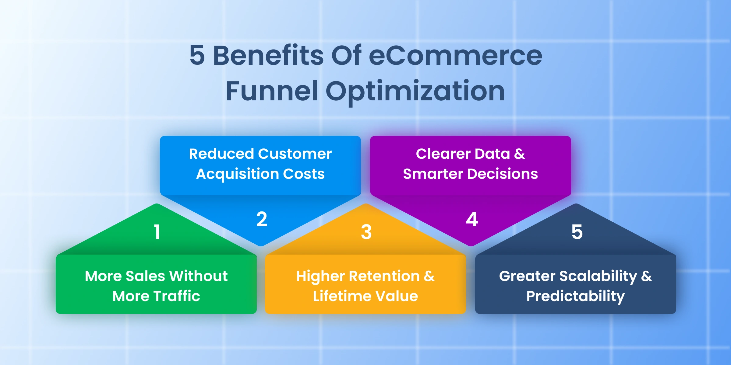 This is where most stores see the real payoff. When your funnel is optimized, everything starts working harder for you. Let’s go through the 5 big ones.