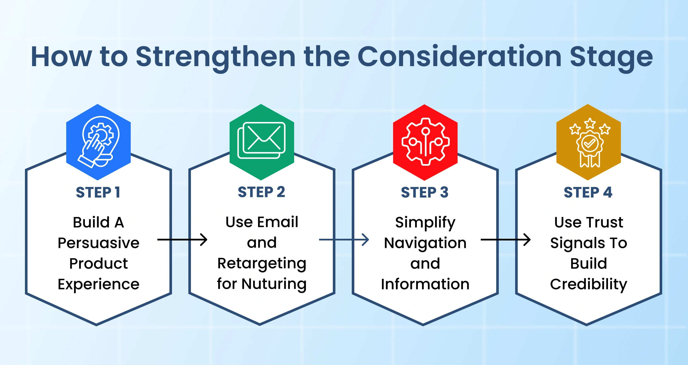 This is the “make or break” zone. At this point, people know your brand exists – but they are still comparing and trying to decide if you’re worth their money. Your job is to remove hesitation and make the decision obvious.
